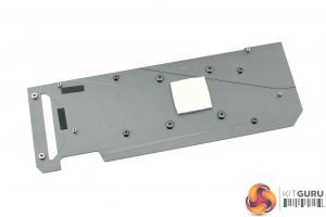 The metal backplate contacts with the PCB thanks to a single, but large, thermal pad right behind the GPU die.