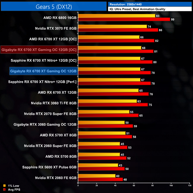 This extra frequency increased gaming performance by between 4-6% in the games we retested at 1440p.