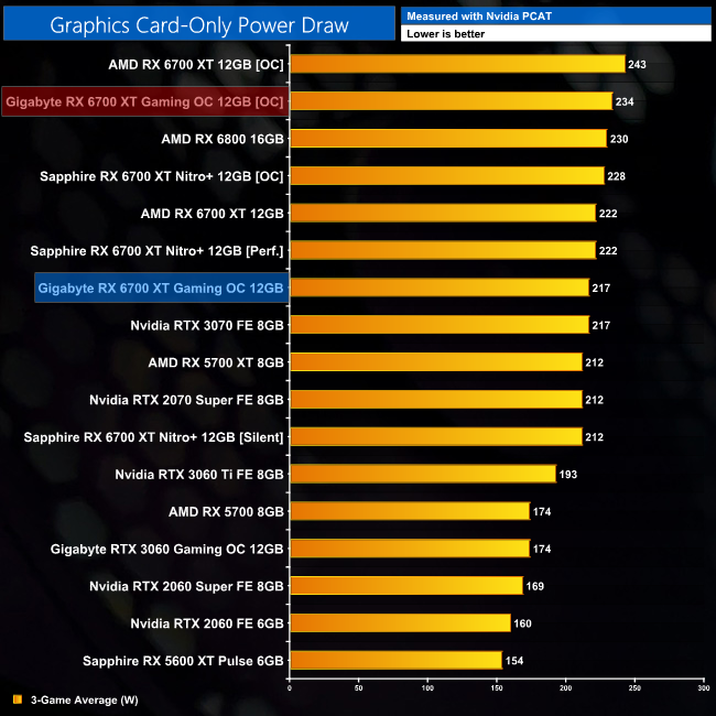 Power draw increased to 234W, up 8% compared to stock behaviour.