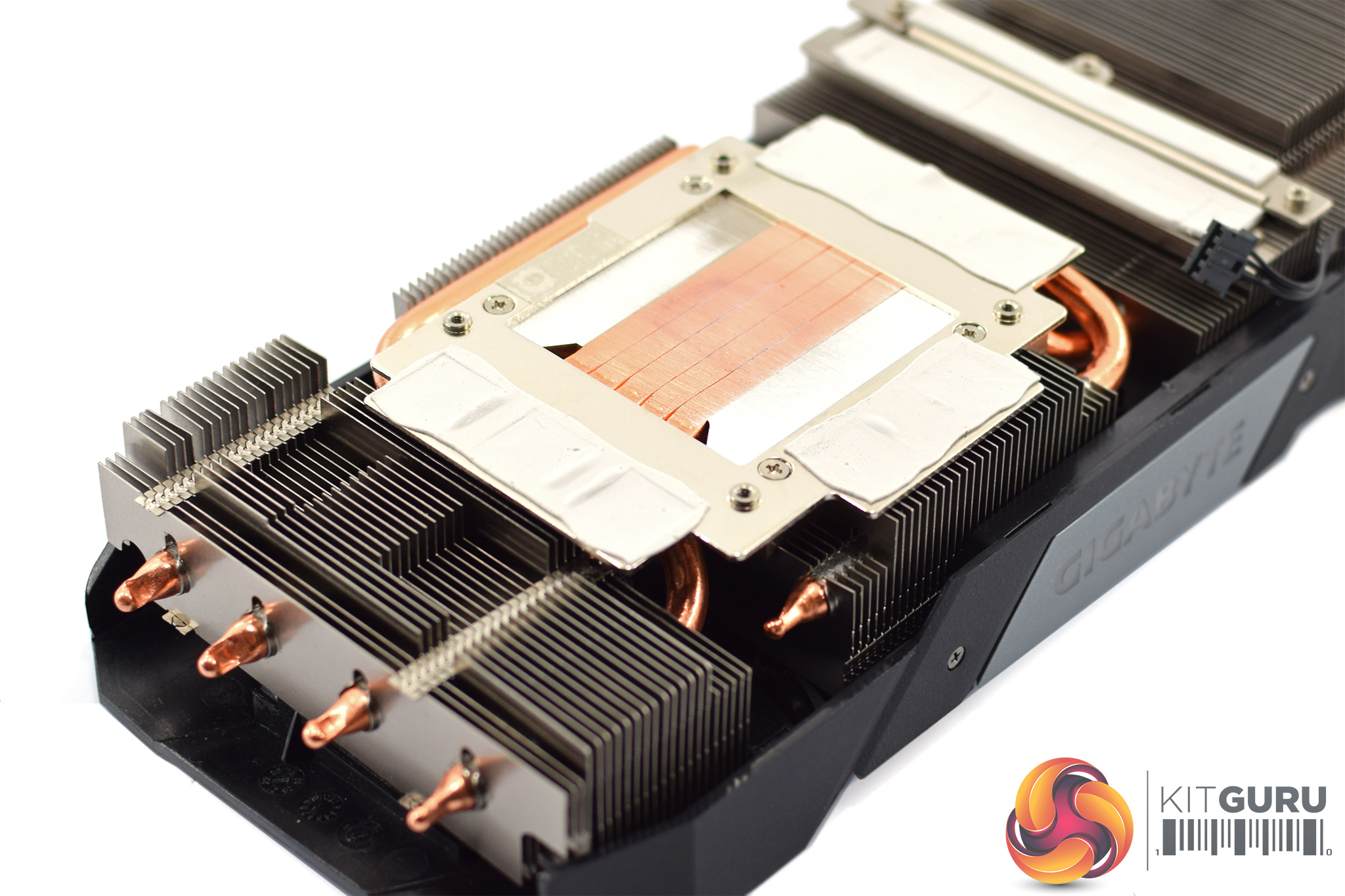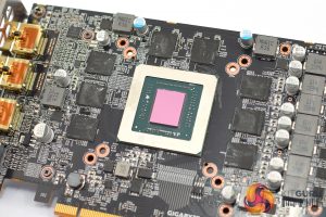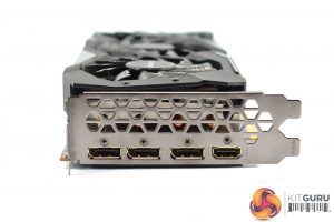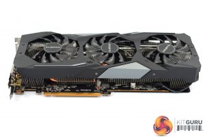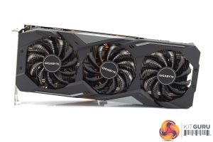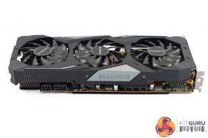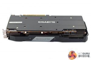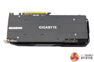 The shroud consists of mostly matte black plastic, but it does also have some grey accents as well. It's overall a very colour-neutral design, though arguably it is also a bit plain. The three fans form part of the Windforce 3X cooler, each measures 80mm and you will note the central fan spins in reverse relative to the outer two. Gigabyte calls this ‘alternate spinning' technology which should reduce turbulence and increase airflow pressure.