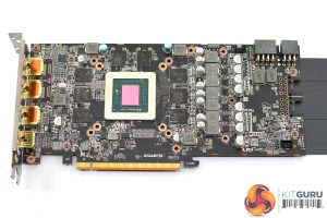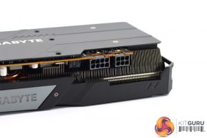 The front side of the card is again quite plain, with a small Gigabyte logo which acts as the card's sole RGB zone. Similarly, while there is a full-length metal backplate, aside from the Gigabyte logo printed in white, it has been left relatively bare.