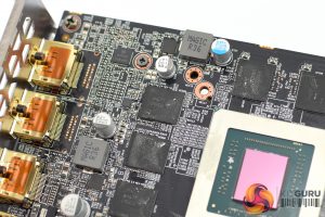 In terms of the PCB, the Gaming OC is pretty straightforward with a 7-phase VRM for the GPU and a 2-phase VRM for the memory. Memory is supplied by Micron in the form of its ‘D9WCW' 14Gbps modules, while we can also see the Navi 10 GPU measuring 251mm².