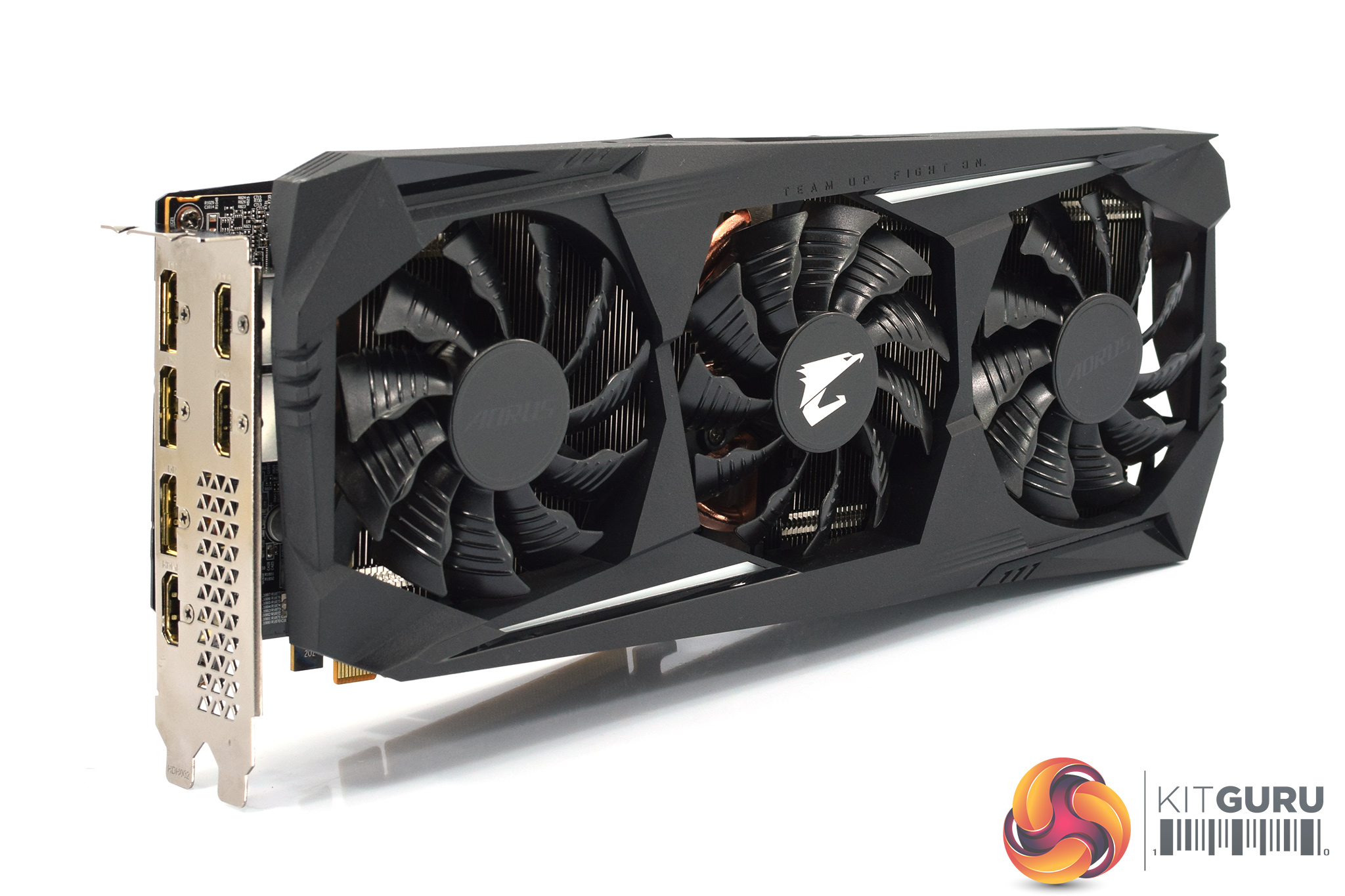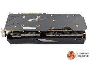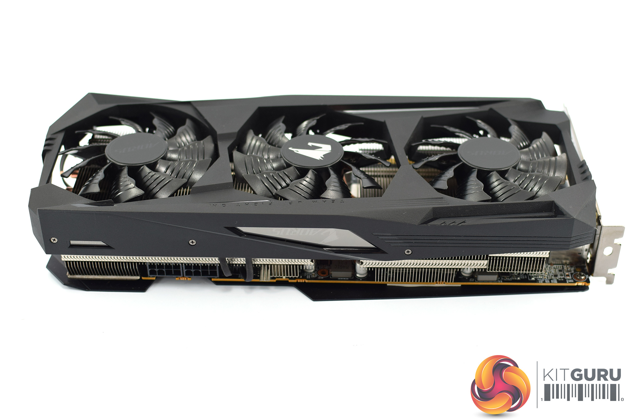 Immediately we can see some design differences when looking at the Aorus card itself. First of all, it is completely back, and that coupled with its slightly more aggressive shroud design reminds me of the Batmobile (but definitely in a good way). Design is always going to be a subjective area, but for me personally I do prefer the look of the Aorus card.