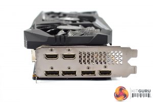 For power, the Aorus requires 2x 8-pin connectors. There's also a total of 6 video outputs – 3x DisplayPort and 3x HDMI.