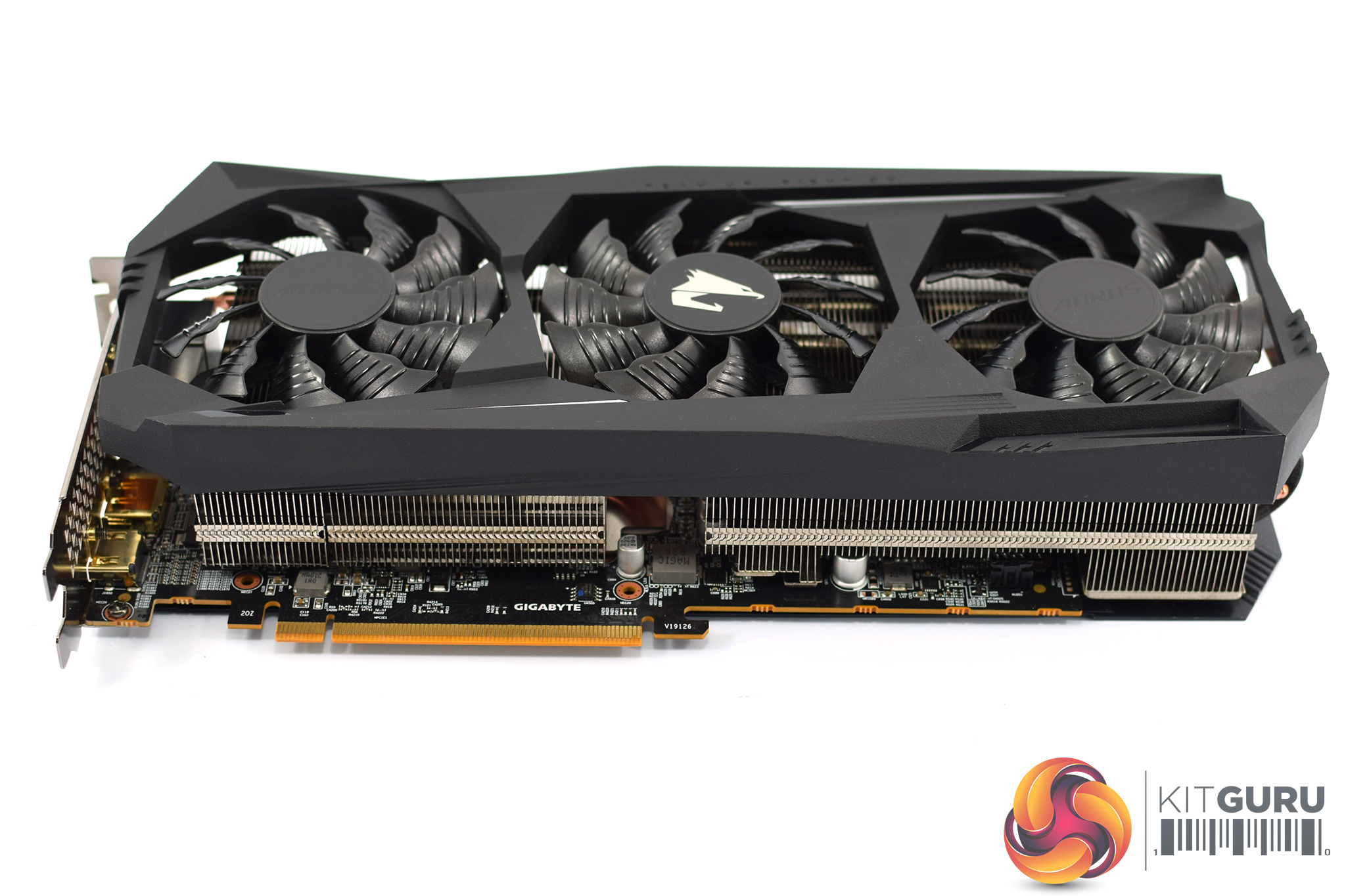 The Aorus is also noticeably larger than its Gaming OC counterpart. It's official dimensions are 290 x 123 x 58 mm – making it only 10mm longer than the Gaming OC, but also 9mm taller and 9mm thicker. It's thickness means this is a true triple-slot card.