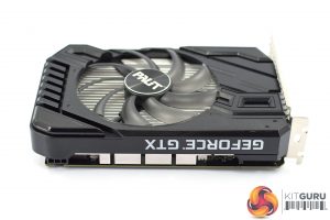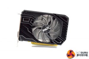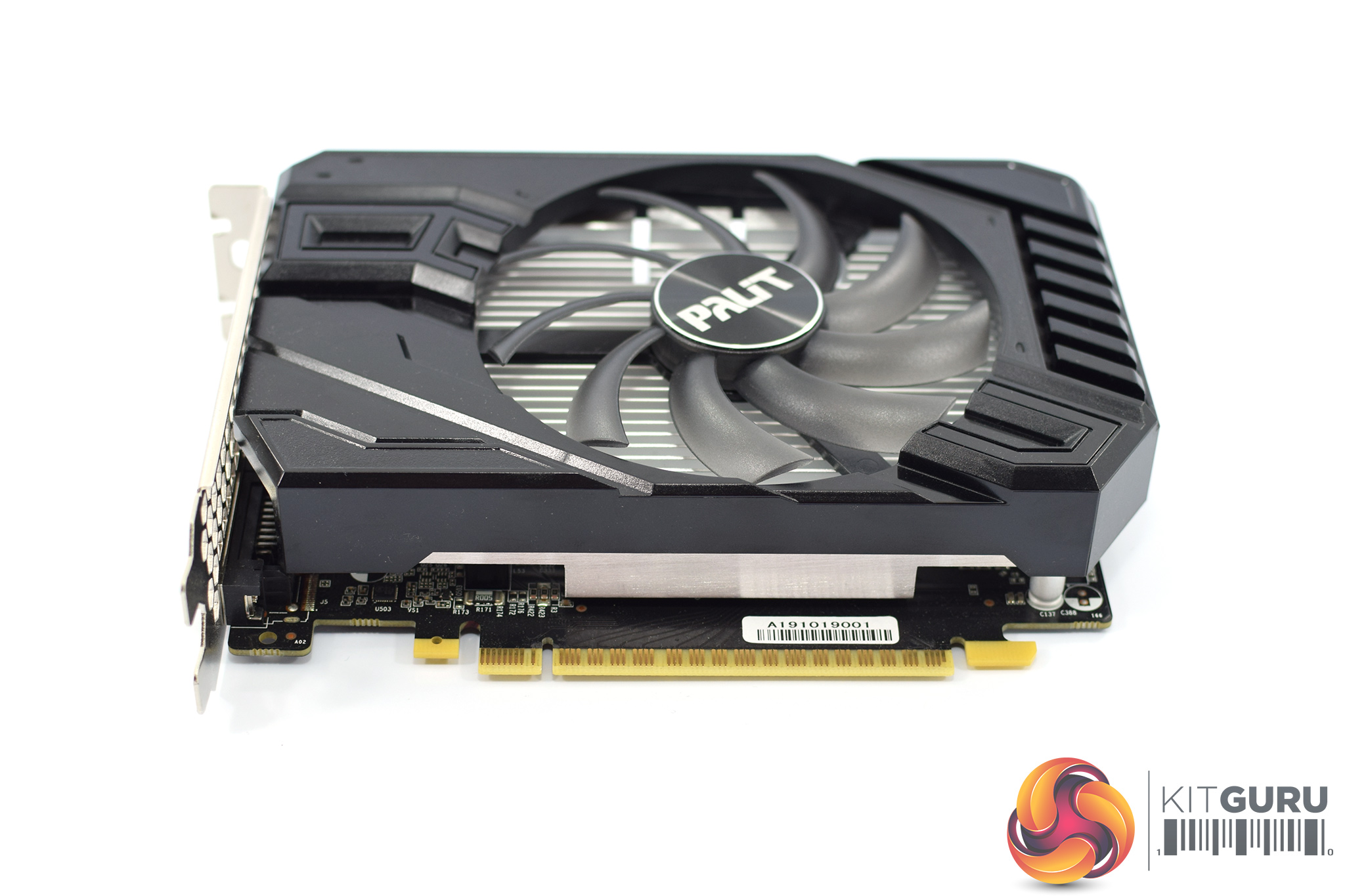 The smallest of the bunch is Palit's GTX 1650 Super. With a single 100mm fan, this card measures just 168 x 122 x 40 mm, making it perfectly suited for cases where space is at a premium. It's perhaps not the most exciting card to look at, and Palit is clearly going for a ‘bang-for-buck' approach as there is also no backplate, but the glossy plastic shroud isn't hideous.