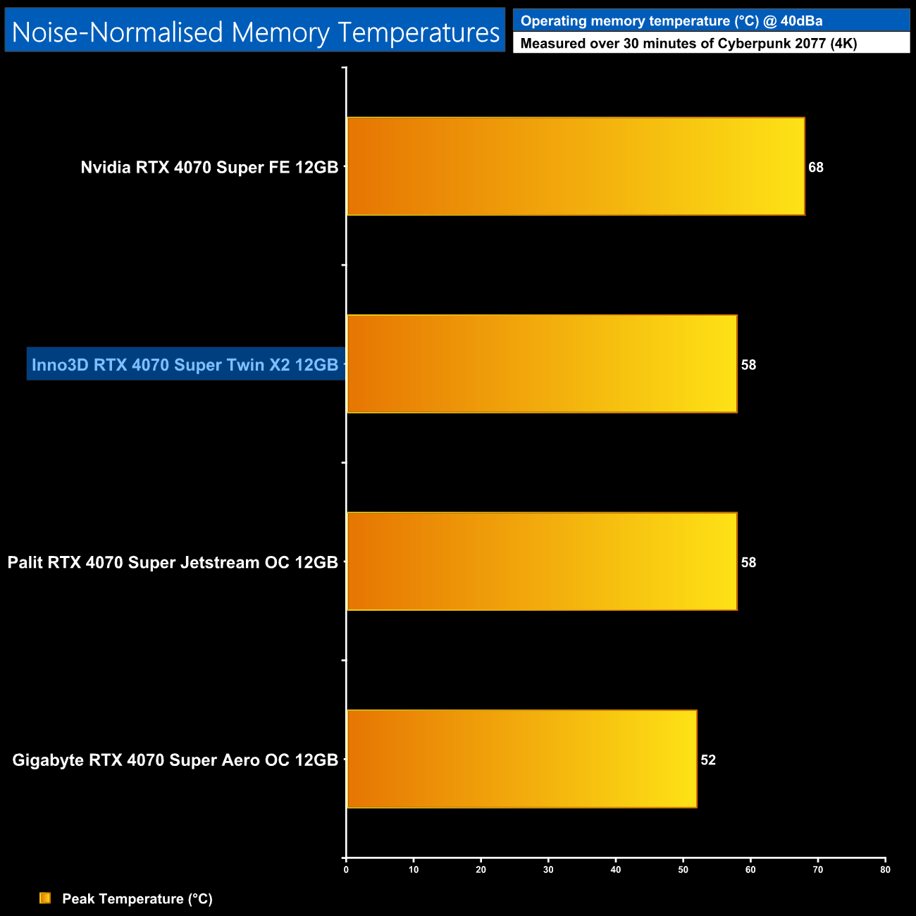 Noise-normalised memory thermals are better still, coming in 10C cooler than the Founders Edition and on-par with the JetStream OC, not bad at all considering the size differences.