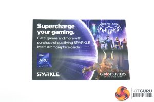Inside, there's no quick start guide or anything like that – the only accessory is a promo code for two free games (Gotham Knights and Ghostbusters: Spirits Unleashed) based on the current campaign Intel is running.