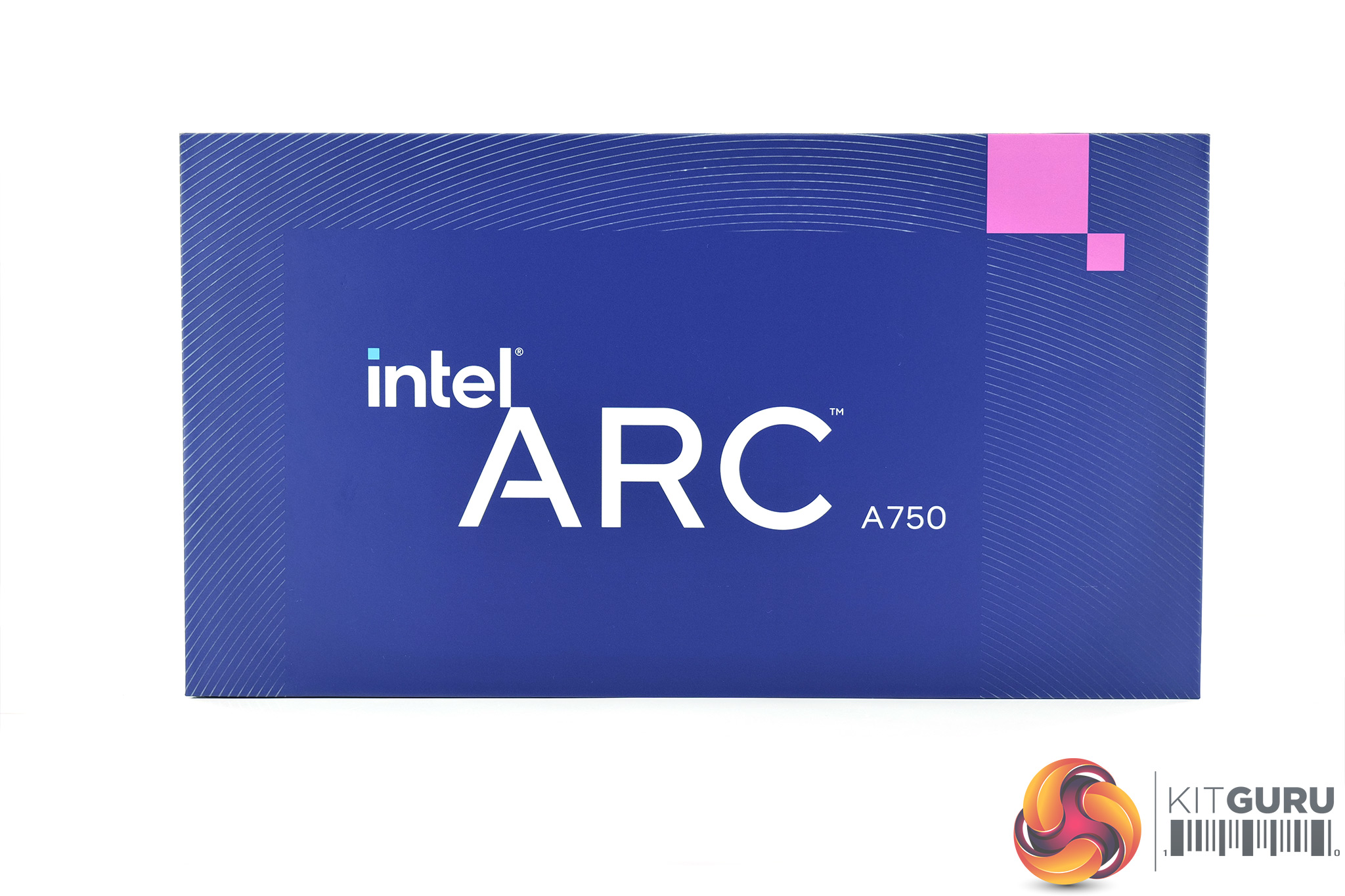 The Arc A750 Limited Edition ships in a compact blue box, with the Arc branding positioned prominently on the front.