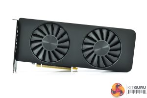 We've already seen a positive reaction to the design of Intel's Limited Edition cards from our unboxing video and we have to say Intel has done a great job with the aesthetic here. The card is almost entirely matte black, with no gaudy design elements or aggressive angles, and on the underside of the shroud we just get a look at the two 90mm axial fans. It's a very simple, but elegant design and it makes a refreshing change from the RGB monsters we have become used to over the last few years.