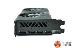 Power requirements consist of one 8-pin and one 6-pin PCIe connector – no 12VHPWR here. Meanwhile for display outputs, credit to Intel for coming to market with three DisplayPort 2.0 connectors, the first of any GPU manufacturer to do so, while there's a single HDMI 2.1 port as well.
