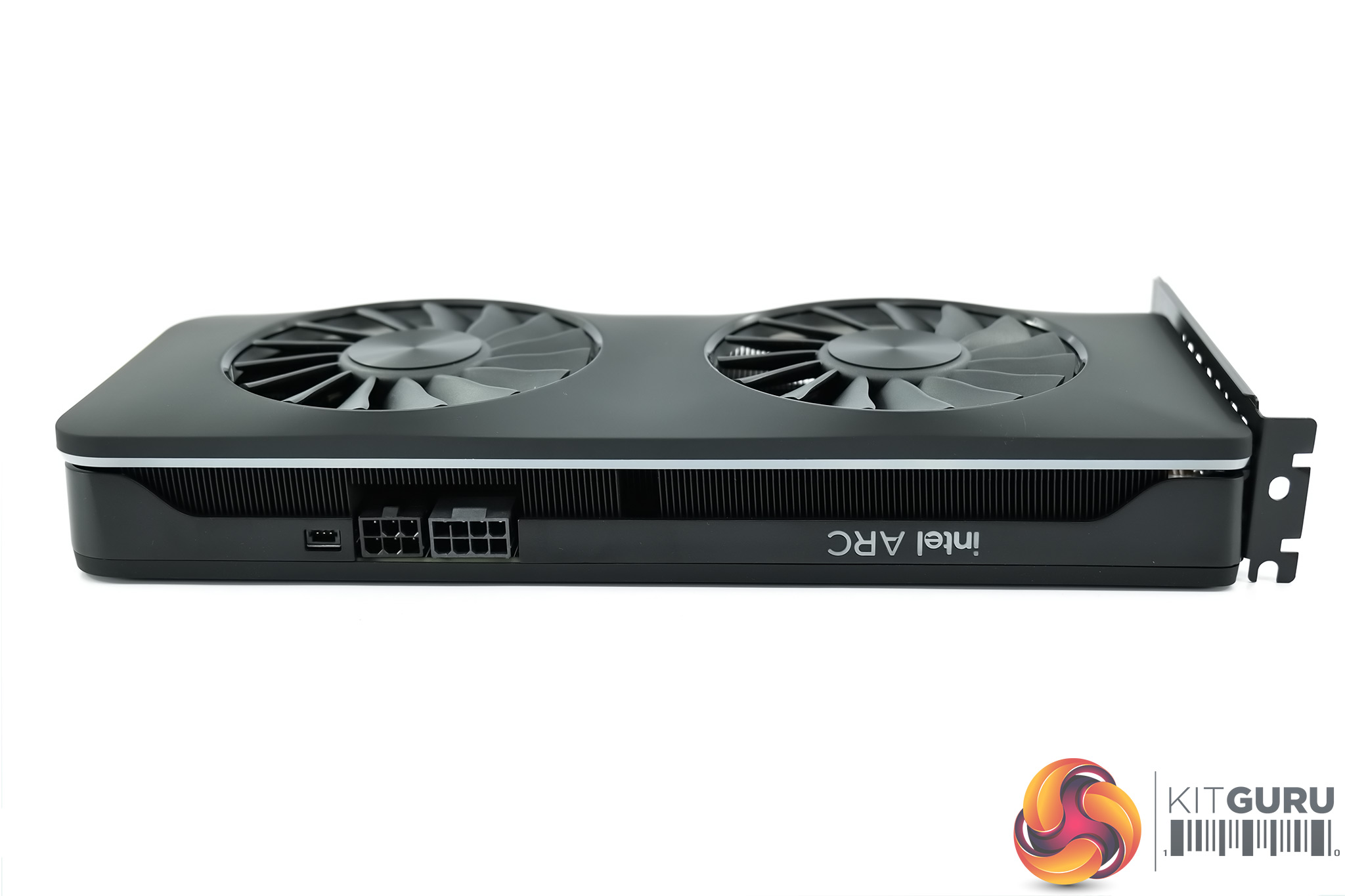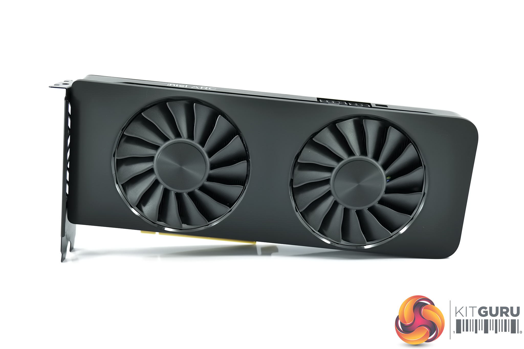 We've already seen a positive reaction to the design of Intel's Limited Edition cards from our unboxing video and we have to say Intel has done a great job with the aesthetics here. The card is almost entirely matte black, with no gaudy design elements or aggressive angles, and on the underside of the shroud, we just get a look at the two 90mm axial fans. It's a very simple, but elegant design and it makes a refreshing change from the RGB monsters we have become used to over the last few years.