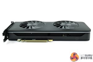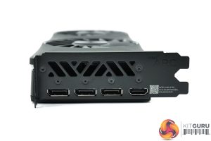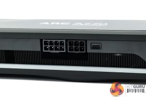 Power requirements consist of one 8-pin and one 6-pin PCIe connector – no 12VHPWR here. Next to the 6-pin connector is the very small 3-pin header that connects to an internal USB header, used for controlling the RGB lighting.