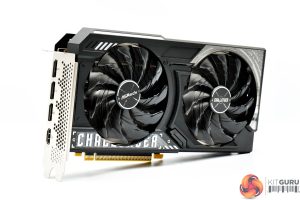 As for the card itself, it's a relatively conventional-looking design, with a black plastic shroud that's accented with some reflective areas, alongside the Challenger branding. It's obviously a dual-fan unit, and each fan measures approximately 100mm in diameter.