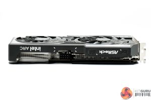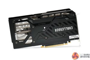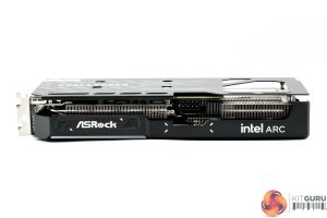 Pleasingly, ASRock has fitted a metal backplate to the card – I, for one, never want to see a cheap plastic backplate ever again so this is a positive move. It also features a large flow-through cut-out, to allow air to pass directly through the heatsink.
