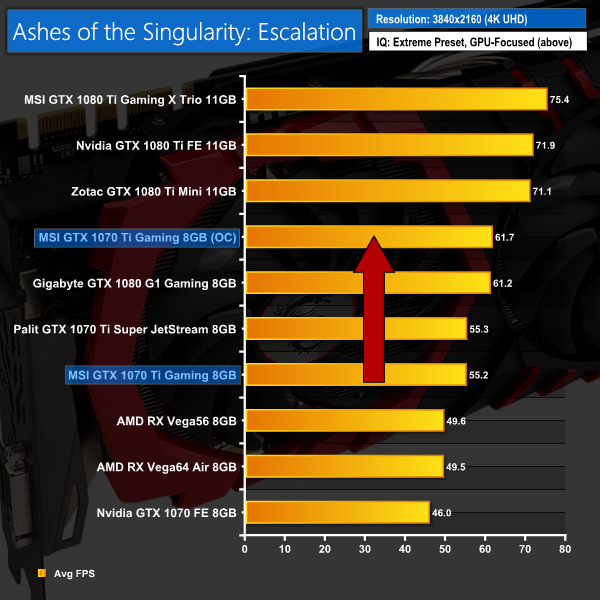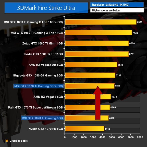 To see how this overclock translates in the real world, we ran all 5 of our test games again, at 4K resolution, along with Fire Strike and Fire Strike Ultra.