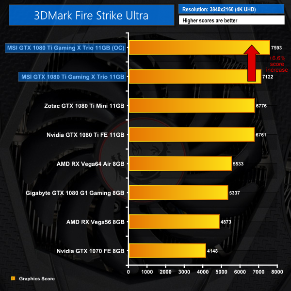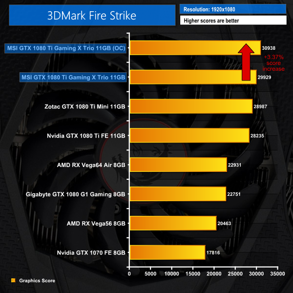 While running Fire Strike, this overclock resulted in a real-world frequency of 2038MHz. The fans, running at full pelt, were actually able providing enough cooling that this frequency held stable for 5 runs of Fire Strike stress test, and that is definitely a testament to the proficiency of MSI's cooling solution.