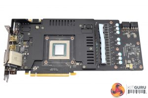 Starting with the PCB, it is clearly an aftermarket design – from the looks of it, it is essentially a GTX 1080 Ti Gaming X PCB. The most visible addition is MSI's use of a contact plate on the VRAM chips that surround the GPU core.