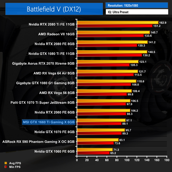 We test using the Ultra preset with the DX12 API. We usually include ray tracing results with BFV, but we have excluded those here as DXR is not a feature applicable to the Radeon VII.
