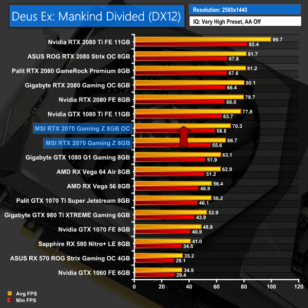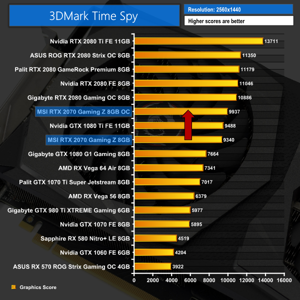 This overclock – even if not hugely significant – still brought some decent gains. We saw our frame rate jump up by about 4FPS when gaming at 1440p, while our Fire Strike score also rose over 1200 points – a 5.4% increase.