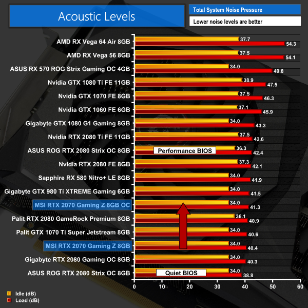 Looking at the thermals, it is impressive to see the Gaming Z only ran 1C hotter when overclocked – its noise levels barely rose as well, meaning there's very little reason not to run the overclock. Power consumption rose about 10W, which is again going to make very little difference in the real world.