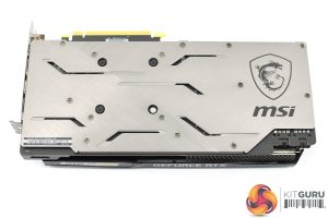 In terms of the backplate, I have to say MSI has made it look very stylish. It's a light grey brushed metal backplate, but because the metal is brushed in two different directions, depending on how light hits the backplate it gives it a very stylish two-tone look. This isn't best demonstrated above as our bright studio lights ensure the backplate is evenly lit, but be sure to watch our video on the first page to get a good look at this effect in action.