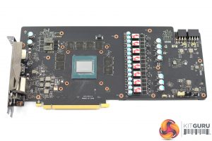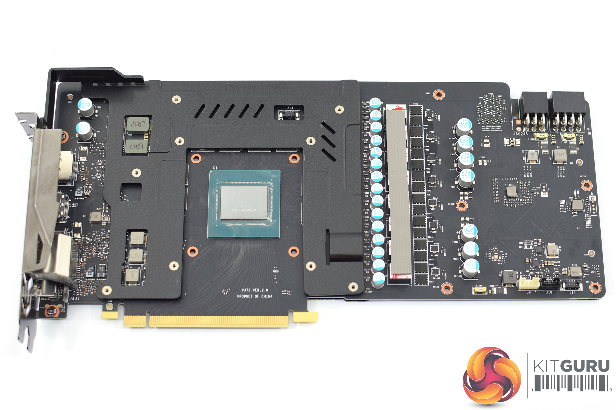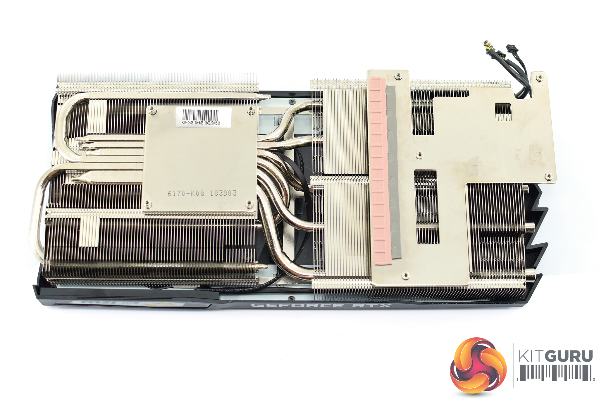 Disassembly is slightly long-winded as you have to remove 18 screws from the back of the card. Once you do that, the heatsink pulls free and we can note the use of a die-cast metal frame which covers the VRAM chips and some power circuitry – similar to the frame we saw on the ASUS Strix RTX 2080. This is what MSI calls a ‘close quarters heatsink' as it cools those VRAM chips, though it also provides some extra structural rigidity to help prevent sagging.