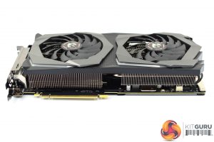 Moving onto the card itself, I have to admit this is probably the best looking aftermarket RTX card I have seen so far. The shroud uses both black and gunmetal grey sections, with some angular elements to give the card a bit of an aggressive appearance – but not so much as to make it look tacky.