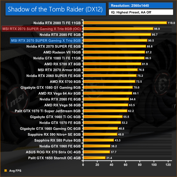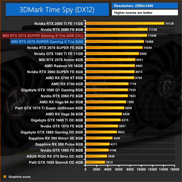 This saw some very decent gains, with the Gaming X Trio now beating the RTX 2080 in all of our games at 1440p resolution. The Fire Strike score also rose by around 1600 points.