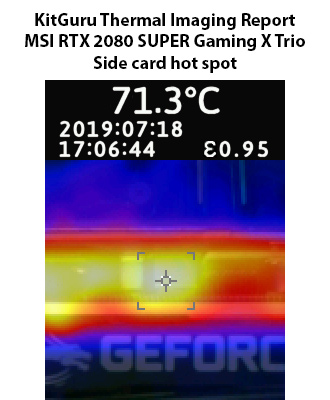 Hot spots, as revealed by our thermal gun, are nothing to worry about either, with a peak of 71C on the side of the card, and 68C on the back.
