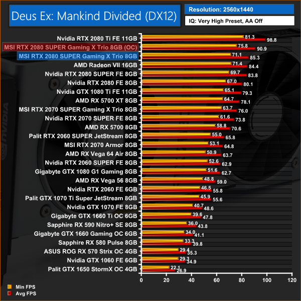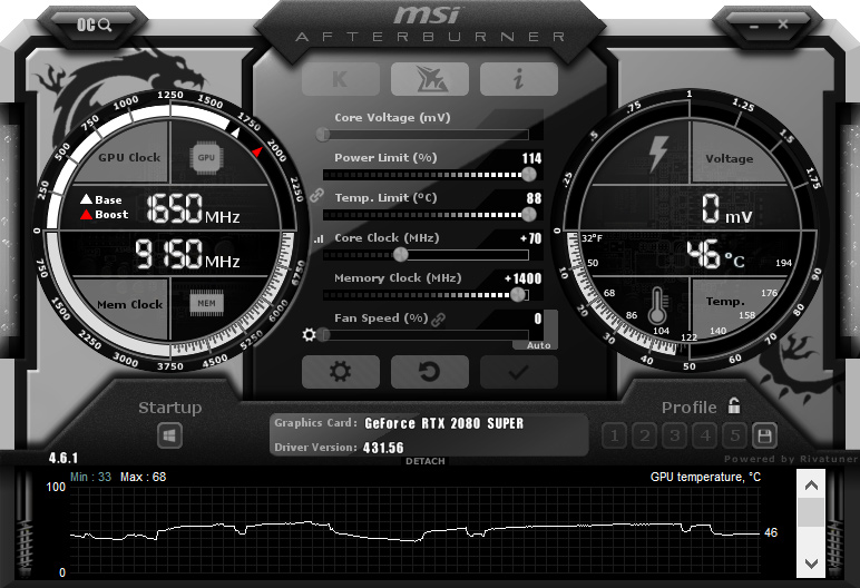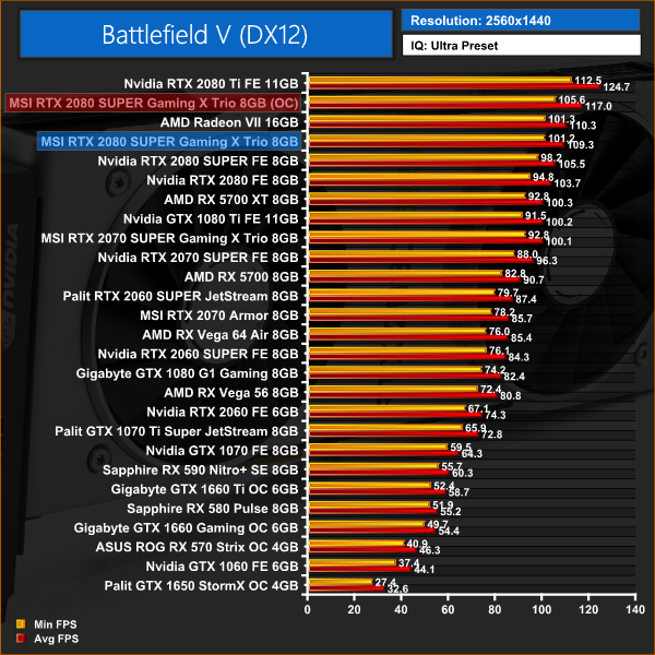 We used MSI Afterburner to overclock the Gaming X Trio, and while we could only add +70MHz to the GPU core, the memory was stable with +1400 – giving it a real-world speed of 18.3Gbps up from 15.5 at stock.