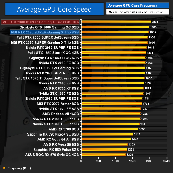 This overclock saw the card breaking past 2GHz, with an average frequency of just under 2030MHz.