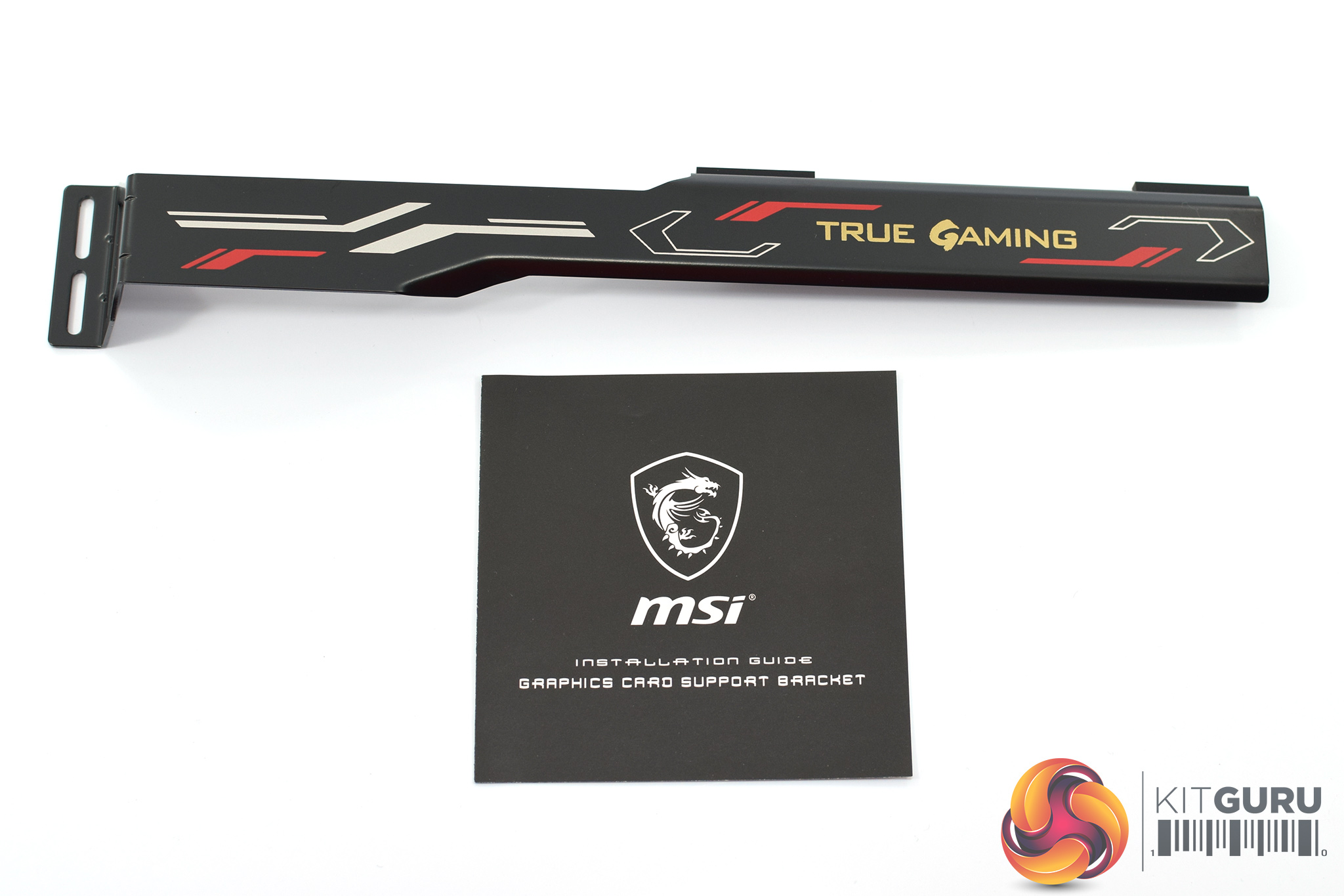 More practical is the included GPU support bracket, which we've seen included with a few of MSI's other models. This will screw into your case, underneath the graphics card, and give it that bit of extra support to prevent any unwanted sagging.