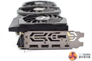 For those of you who aren't familiar with this design, the card uses a gun-metal grey and black plastic shroud, with a total of three fans. These are MSI's Torx 3.0 design, and you will notice the fan closest to the I/O bracket is smaller, at 90mm across, while the other two fans measure 100mm.