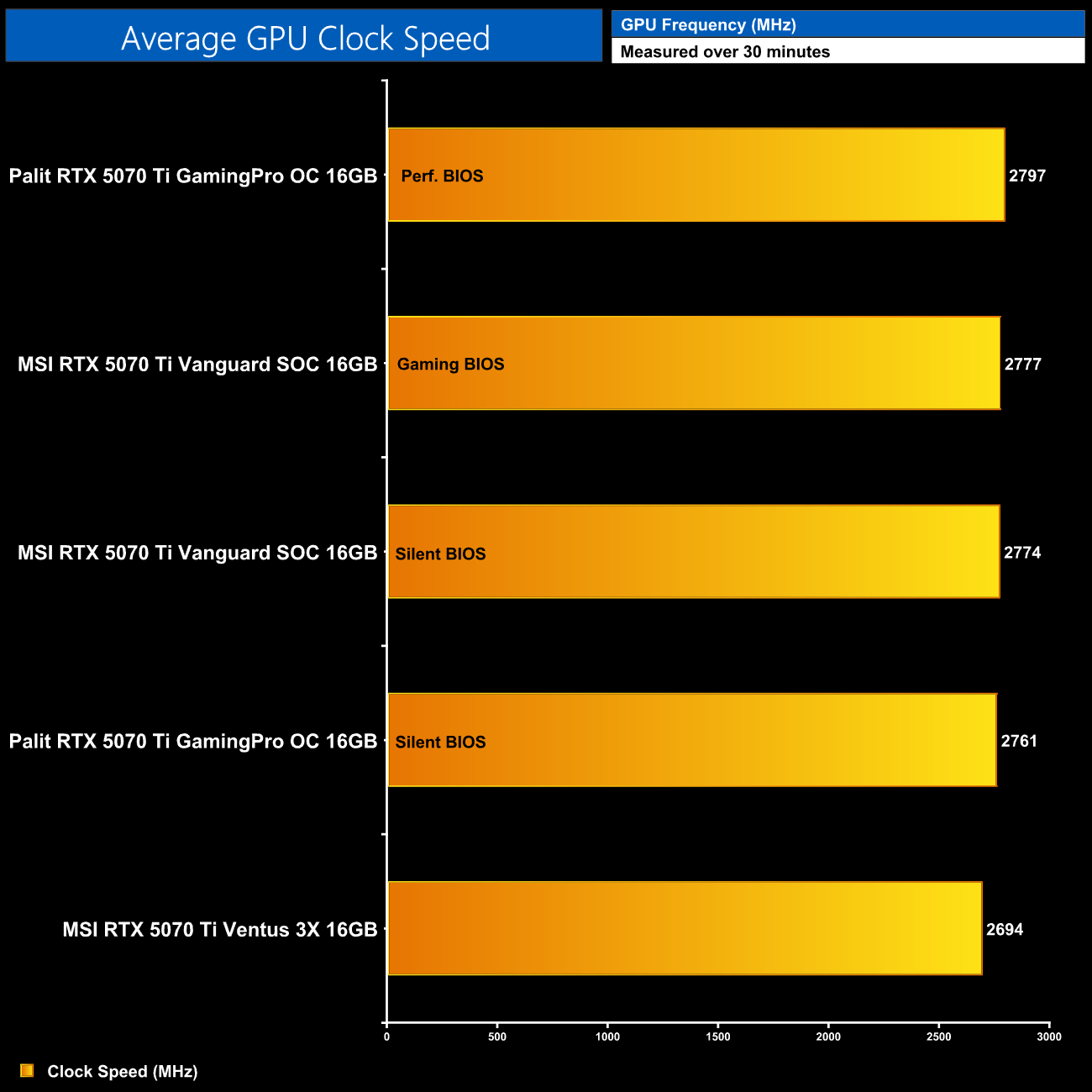 In fact, averaged over the thirty minute stress test, the difference was roughly 80MHz, so not a significant uplift.