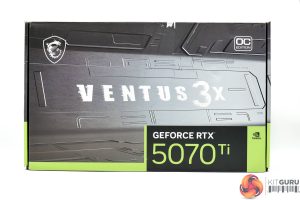 The MSI RTX 5070 Ti Ventus 3X ships in a grey box, with the Ventus branding visible on the front.