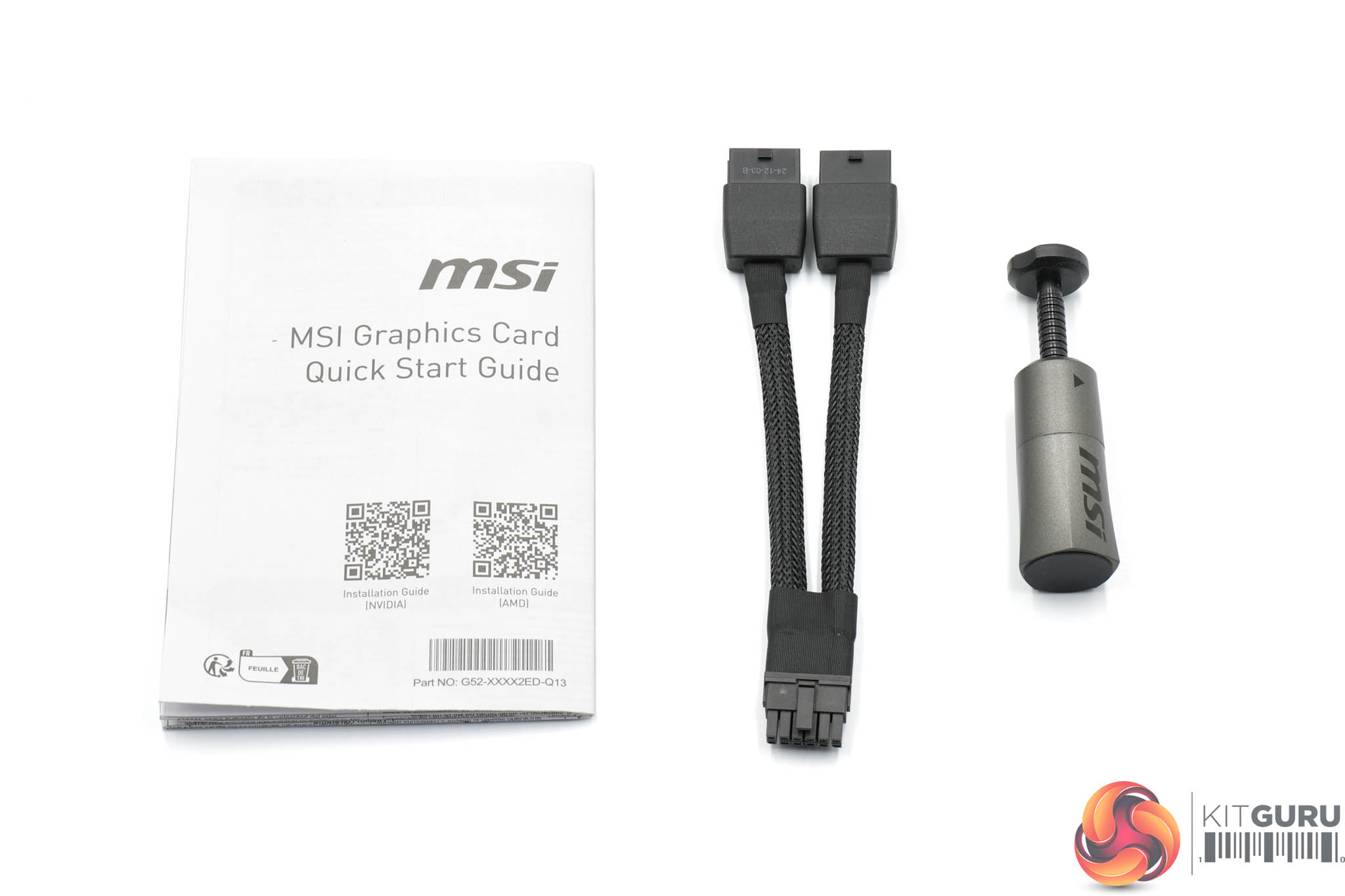 Inside, a quick start guide is included alongside the dual 8-pin to 12V-2X6 adapter, as well as a GPU support stand to prevent any unwanted sag.