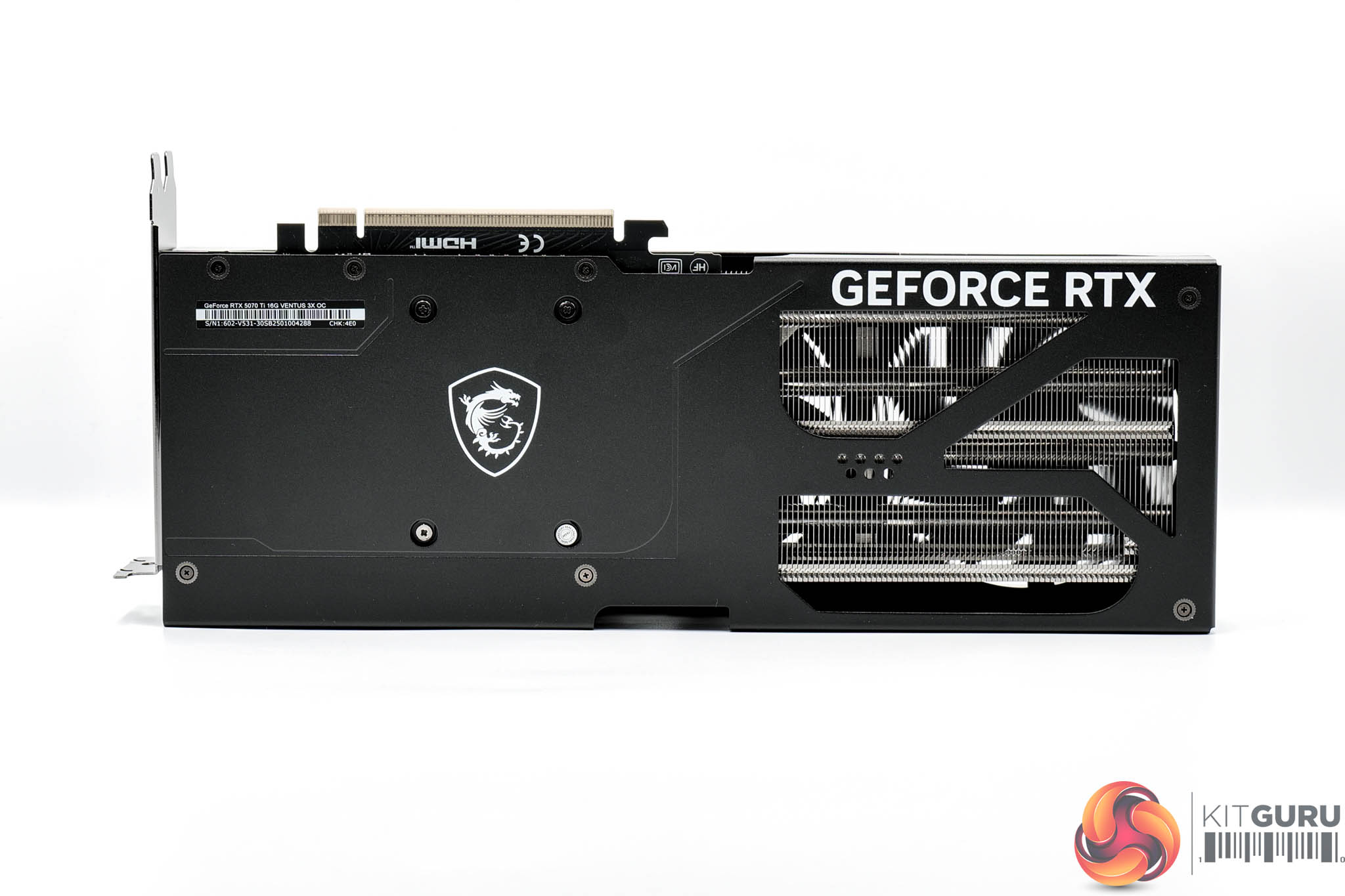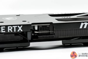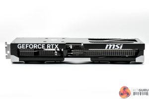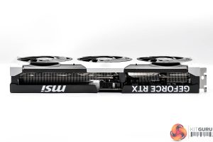 The front side of the card is home to the GeForce RTX and MSI logos printed in white, though do note there are no RGB LEDs anywhere on this card so nothing lights up once the system is powered on.