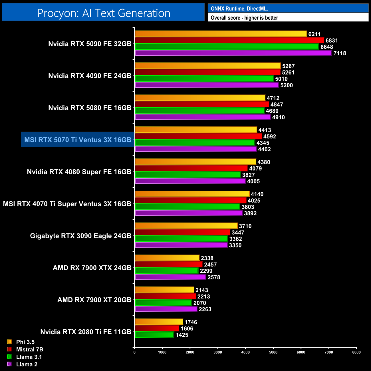 As we saw in our RTX 5080 review, though, there are more positives to take from the AI Text Generation test, with the RTX 5070 Ti delivering gains of over 13-15% compared to the RTX 4070 Ti Super.