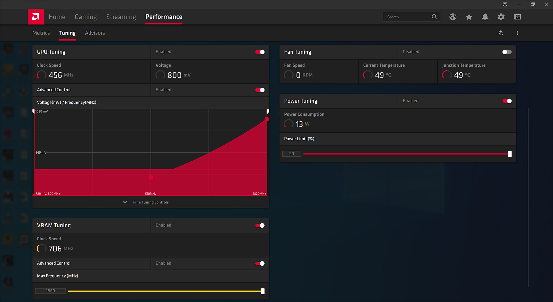 When manually overclocking the Gaming X, we used AMD's own tuning tool in the Adrenalin 2020 software. The GPU frequency is limited to 1820MHz, which was achievable with this card. As the Gaming X's memory runs at 12Gbps, however, we had a lot more headroom and our card was still able to max out its memory speed at 1860MHz, or 14.88Gbps.