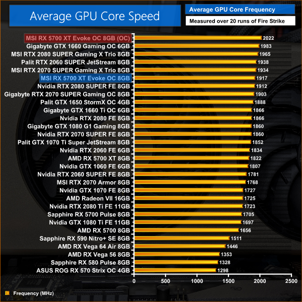 This overclock raised the card's average frequency under load by 105MHz, an increase of 5.4%.