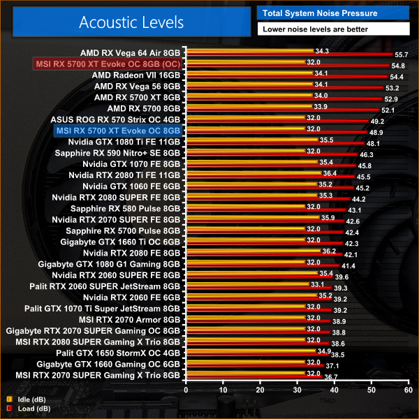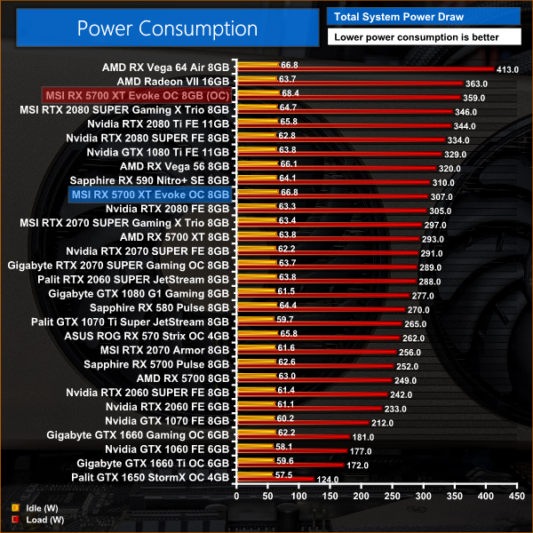 While the card still ran at sub-70C temperatures, noise levels increased even further – to almost Vega 64 levels, with the fans spinning at 77%, or 2470rpm. Power draw also rose considerably, by just over 50w.