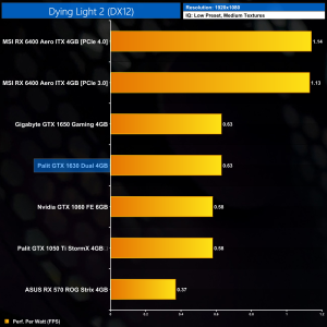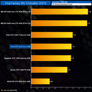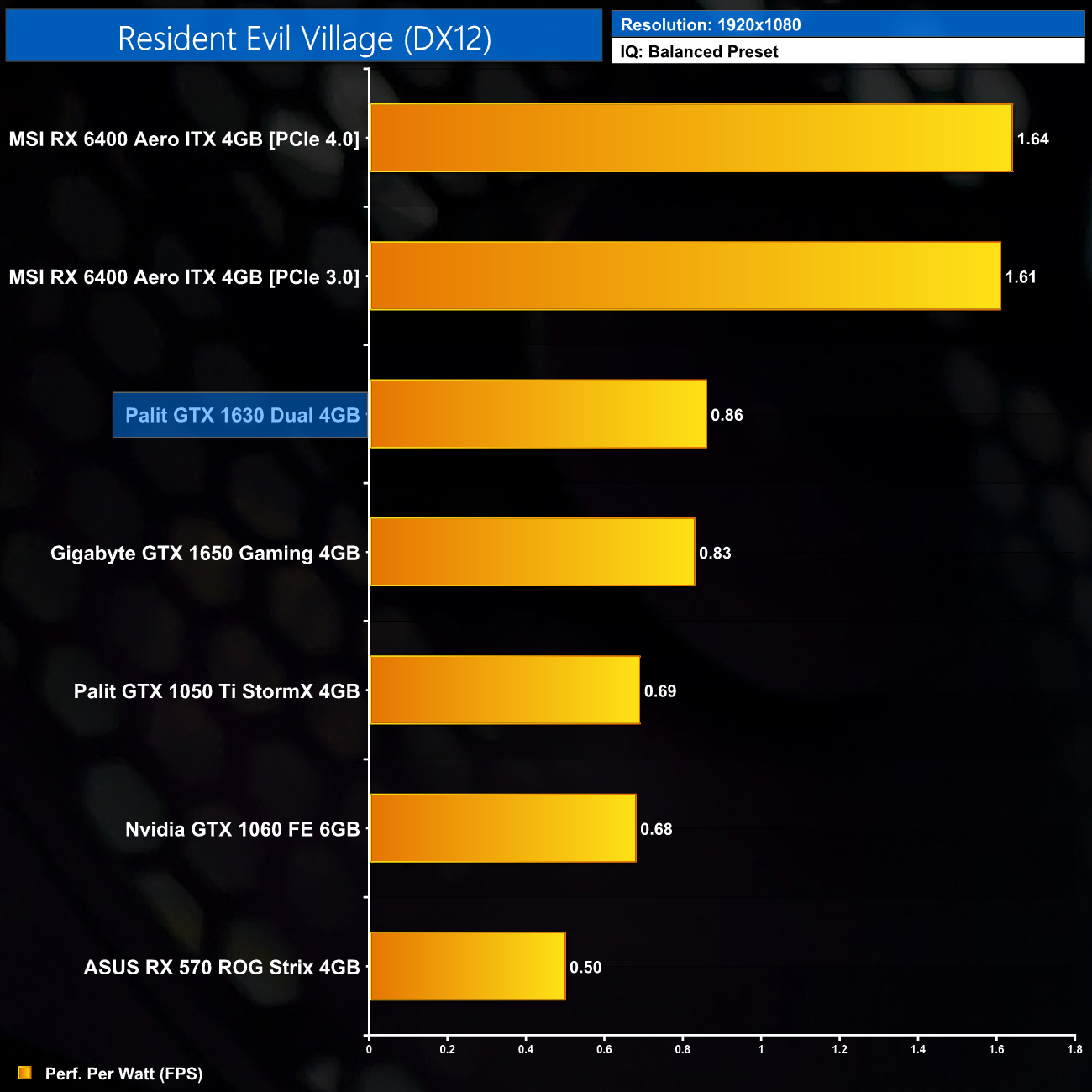 Overall efficiency is on-par with the GTX 1630, which is to be expected. Turing is clearly not as efficient as a more modern architecture like RDNA 2, but with such low power draw it was never going to look overly inefficient.