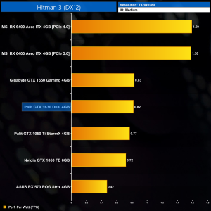 Using the graphics card-only power draw figures presented on the previous page, here we present performance per Watt on a per-game basis for all twelve games we tested at 1080p.