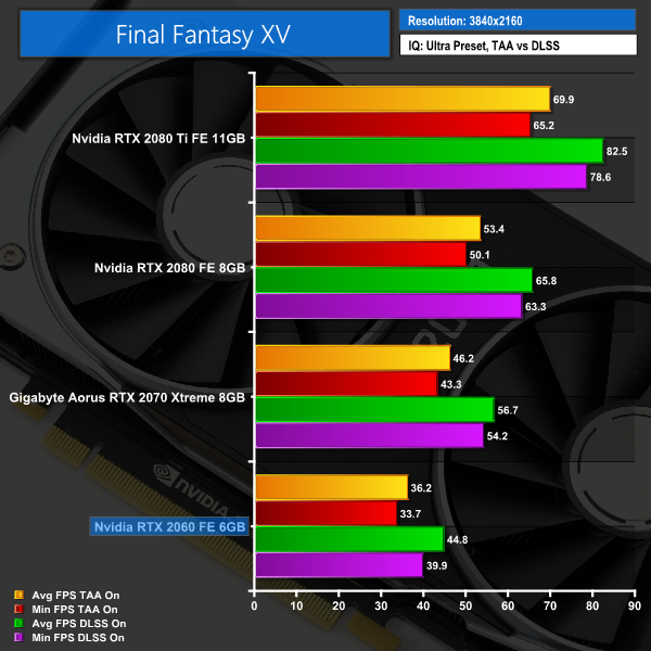 Given that FFXV only lets you enable DLSS at 4K, it's not the most viable of situations for the RTX 2060 – even with DLSS enabled, this isn't a 4K gaming card.