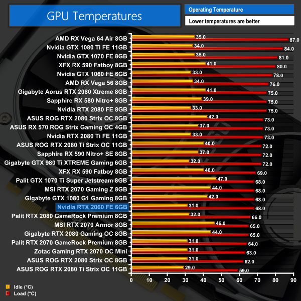 Thermal performance was one area where I was really impressed when testing the 2080 and 2080 Ti Founders cards back in September, and I am even more impressed with the temperatures of the RTX 2060 FE.
