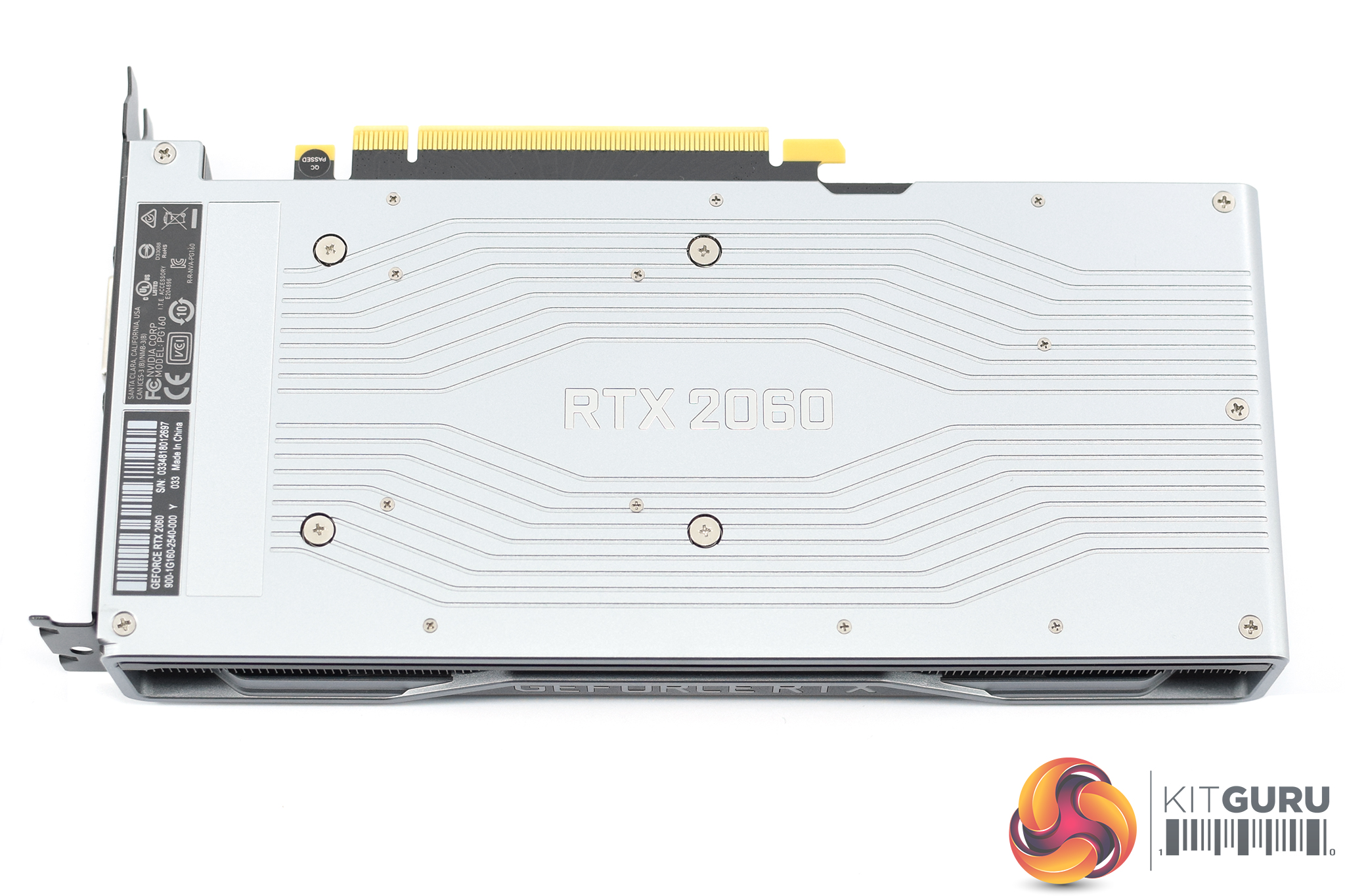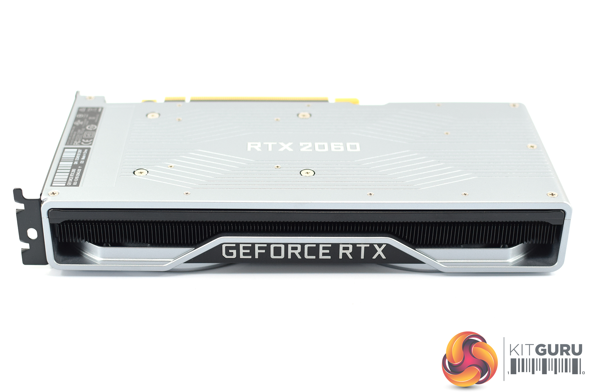 The silver backplate uses the same design as all the other 20-series cards, with the card name – ‘RTX 2060' – placed right in the middle, surrounded by some lines etched into the metal which adds some interest.