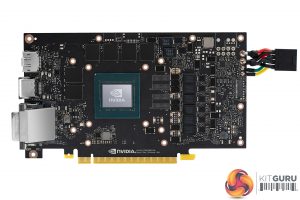 As we saw from our look at the PCB, the single 8-pin power connector is placed on the end of the card – so even though the Founders Edition itself is just under 230mm long, you will need to allow for an extra few centimetres of clearance in your case for the PCIe power cable and connector.
