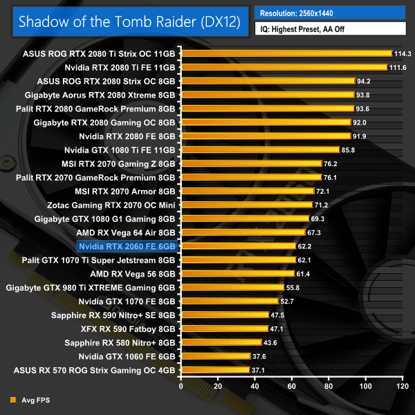 Shadow of the Tomb Raider continues this trend, as we again see the RTX 2060 edge ahead of the GTX 1070 Ti at 1080p, 1440p and 4K.