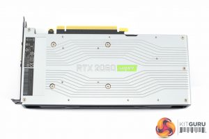 The first cosmetic change with 2060 SUPER is immediately noticeable, as the central section of the shroud – between the two fans – is no longer black, but is instead a silver plate with a mirror finish, and it is very reflective. You will also note the green ‘SUPER' branding printed on this section of the card.